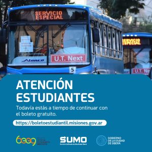 Transporte Atención Estudiantes Los estudiantes de Nivel Inicial, Primario y Secundario deberán revalidad los datos completando el formulario en el sitio web: https://boletoestudiantil.misiones.gov.ar y presentarlo en cualquiera de 11 de abril, 2024
