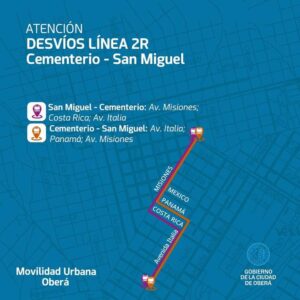 Transporte Desvio provisorio por obras (Líneas 2R y 9C) Les informamos que a partir del día 17 de abril, una cuadra de la calle Fleming estará cerrada al tránsito, entre la avenida Misiones y 16 de abril, 2024